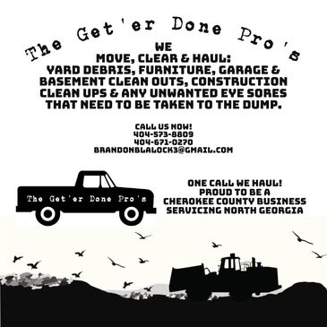 The Get‘er done pros North Georgias easiest solution to getting your non household trash to the dump. they specialize in yard debris, basement, shed, attic clean outs. If it can be moved they can safely haul it and suppose if it in the correct dump!