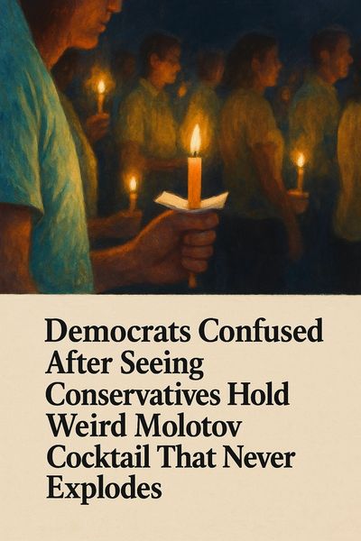WOODSTOCK, GA — Hundreds of supporters gathered last night for a candlelight memorial honoring American hero Charlie Kirk. The event was serene, patriotic, and moving… unless you were a Democrat, in which case it was a confusing display of what some described as “an army of conservatives holding malfunctioning Molotov cocktails.”
